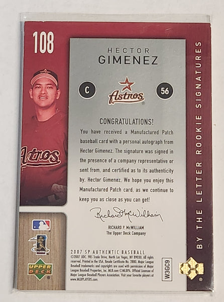 2007 SP Authentic Upper Deck Hector Gimenez By the Letter Rookie Signatures Auto /50 #108